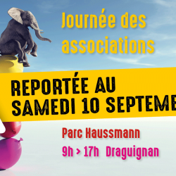 En raison des conditions météorologiques, la journée des associations est reportée au samedi 10 septembre Retrouvez nous de 9h à 17h au parc Haussman !